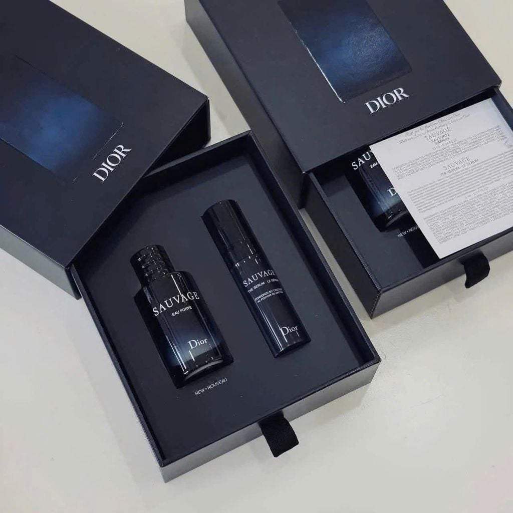 - Bạn muốn khẳng định phong cách mạnh mẽ, cuốn hút của mình? GiftSet Nước Hoa Dior Sauvage Eau Forte Parfum gồm 1 chai nước hoa 10ml và Serum dưỡng da Dior 10ml sẽ là sự lựa chọn hoàn hảo. Dior Sauvage Eau Forte Parfum là một kiệt tác nước hoa nam đến từ thương hiệu Dior danh tiếng. Với công thức độc đáo, chai nước hoa này mang đến một trải nghiệm hương thơm đầy mãnh liệt và cuốn hút.