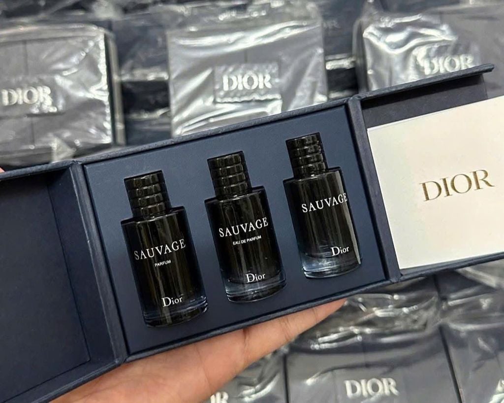 - Chắc hẳn dòng nước hoa Dior Sauvage của Dior không còn quá xa lạ với đấng mày râu thích nước hoa, hầu như ai cũng thích mùi hương nam tính, mạnh mẽ này. Đừng chỉ chọn một, hãy sở hữu cả ba phiên bản biểu tượng trong bộ quà tặng độc quyền trong Set Nước Hoa Dior Sauvage bao gồm 3 mùi hương với nồng độ tinh dầu Eau de Toilette + Eau de Parfum + Parfum.