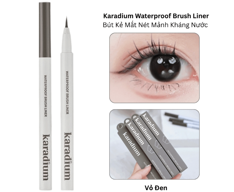 - Bút dạ Kẻ Mắt Không Trôi Karadium Waterproof Brush Liner Black “Vũ khí” thời thượng không thể thiếu trong gia tài makeup đồ sộ của các cô nàng, giúp các nàng có một đôi mắt sắc sảo, xinh đẹp và to tròn như mong muốn. Em Brush Liner nhà Karadium với đầu cọ mảnh giúp đường kẻ chuẩn và sắc nét từng chi tiết mang lại ánh nhìn tự nhiên cho đôi mắt