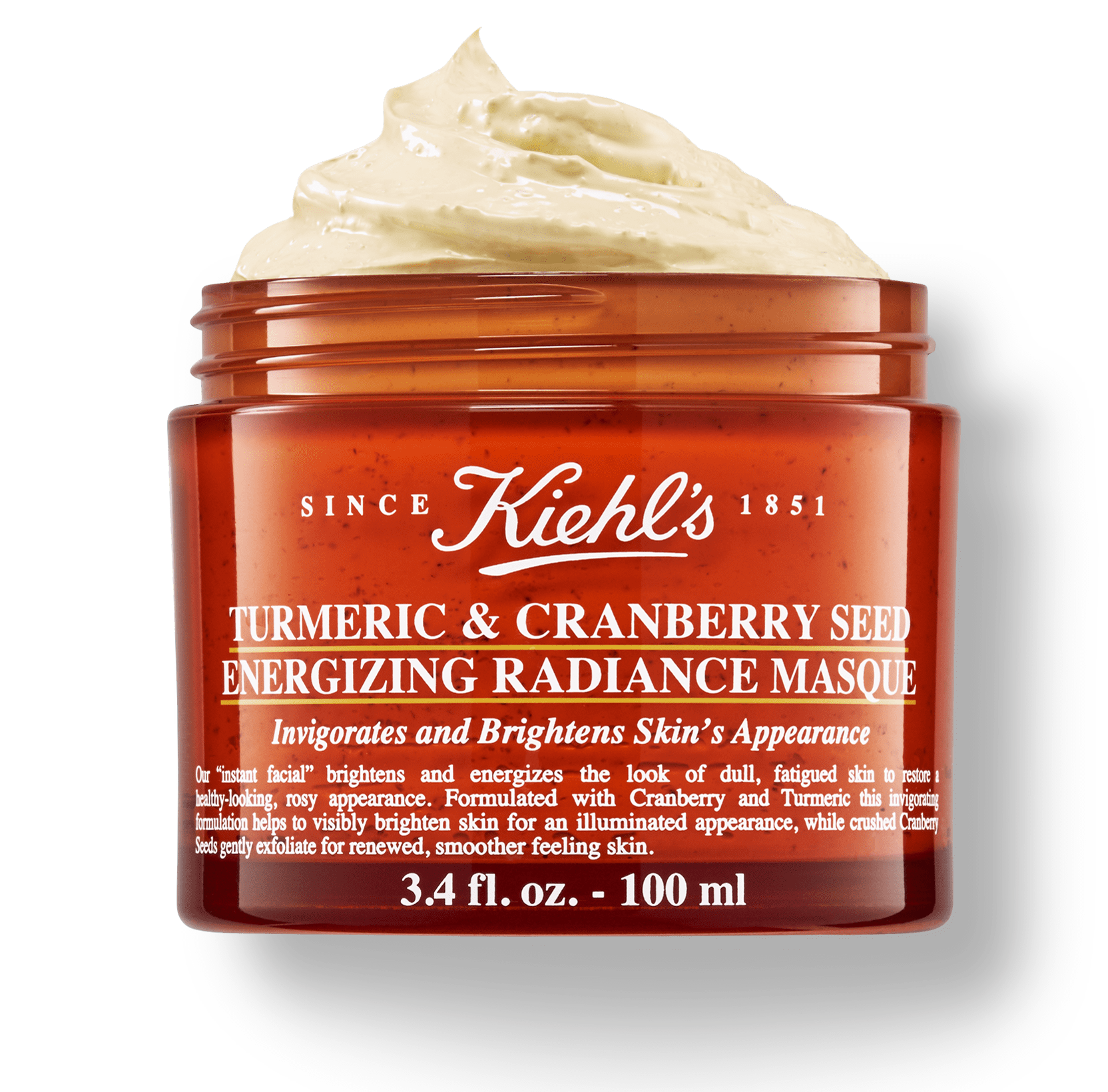 Mặt nạ Kiehl's Turmeric & Cranberry Seed Energizing Radiance Masque có tác dụng thanh lọc và giúp làm sáng da nhờ chiết xuất nghệ cùng hạt nam việt quất nhẹ nhàng tẩy tế bào chết, hỗ trợ hút sạch bã nhờn, se khít lỗ chân lông, bạn sẽ được trải qua càm giác vô cùng thư giãn sau một ngày dài mệt mỏi với loại mặt nạ này.