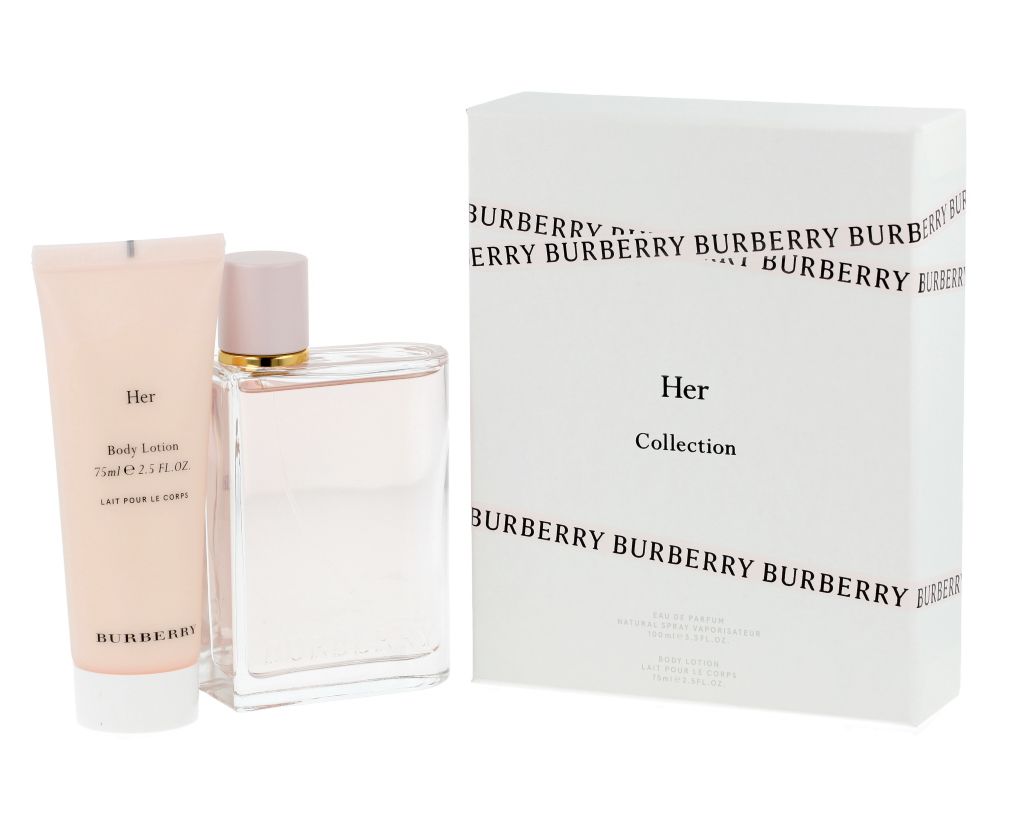 - Giữ nguyên thiết kế lọ vuông vắn và đơn giản với phần nắp được biến tấu thú vị từ năm 1981, Burberry Her phù hợp với những cô nàng yêu dáng vẻ thanh lịch và tinh tế. Màu nước hoa hồng nhạt lấp lánh ẩn trong thân chai cũng là điểm nhấn nữ tính góp phần tô đậm tinh thần của mùi hương.