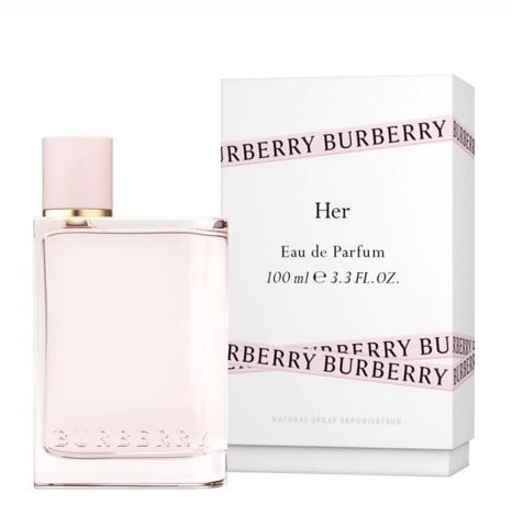 - Giữ nguyên thiết kế lọ vuông vắn và đơn giản với phần nắp được biến tấu thú vị từ năm 1981, Burberry Her phù hợp với những cô nàng yêu dáng vẻ thanh lịch và tinh tế. Màu nước hoa hồng nhạt lấp lánh ẩn trong thân chai cũng là điểm nhấn nữ tính góp phần tô đậm tinh thần của mùi hương.
