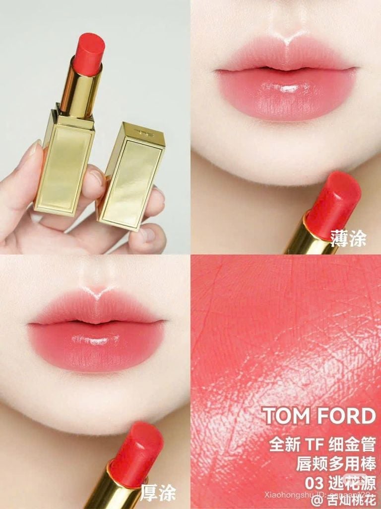 Không chỉ là son dưỡng thông thường, 03 Escapist mang đến sắc hồng cam san hô nhẹ nhàng, ngọt ngào mà vẫn tinh tế và sang trọng đúng chuẩn Tom Ford. Lướt một lần là môi hồng hào, căng mọng như phủ sương. Dù bạn để mặt mộc hay trang điểm, chỉ cần một chút 03 Escapist – gương mặt bạn lập tức bừng sáng đầy sức sống.