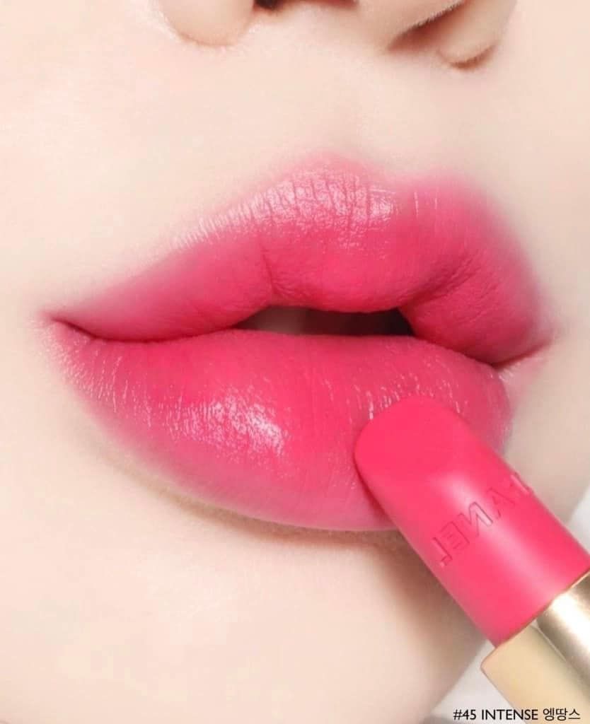 - Son Chanel 45 Intense với tông màu hồng baby tạo nên vẻ đẹp quyến rũ, rạng ngời, trẻ trung cho phái đẹp, làm ngất ngây bao chàng trai từ ánh nhìn đầu tiên. Đặc biệt, màu son Chanel 45 phù hợp với rất nhiều tone da từ tone da trung bình tới trắng nha các nàng.