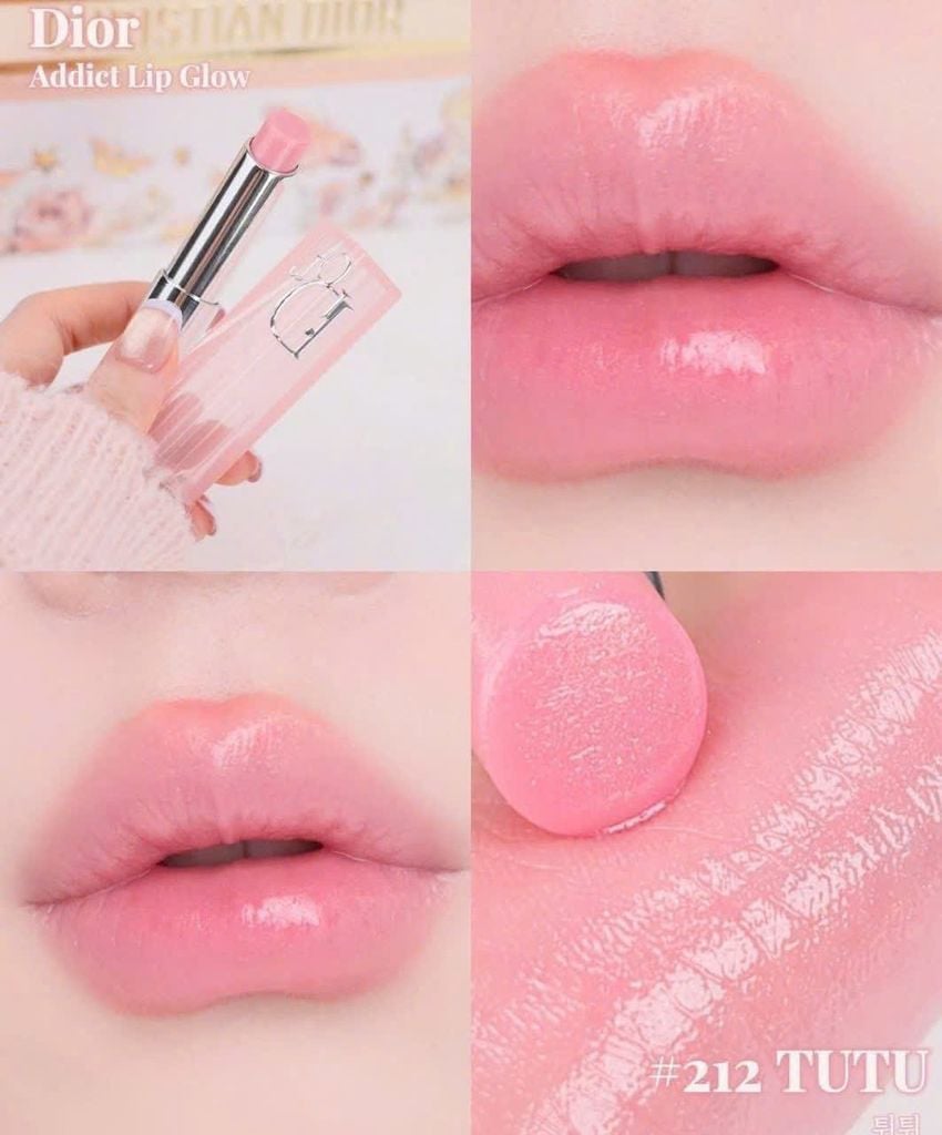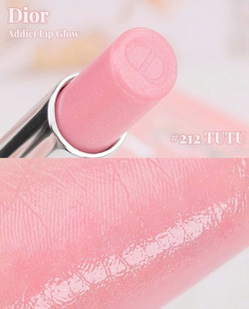 - Son Dưỡng Dior Addict Lip Glow 212 Tutu mang sắc hồng nhũ trong veo giúp đôi môi phái nữ trở nên xinh xắn và ngọt ngào hơn. Dior Addict Lip Glow 212 Tutu à dòng dưỡng môi mới nhất của Christian Dior giúp làm bền và tăng cường màu sắc tự nhiên của đôi môi.