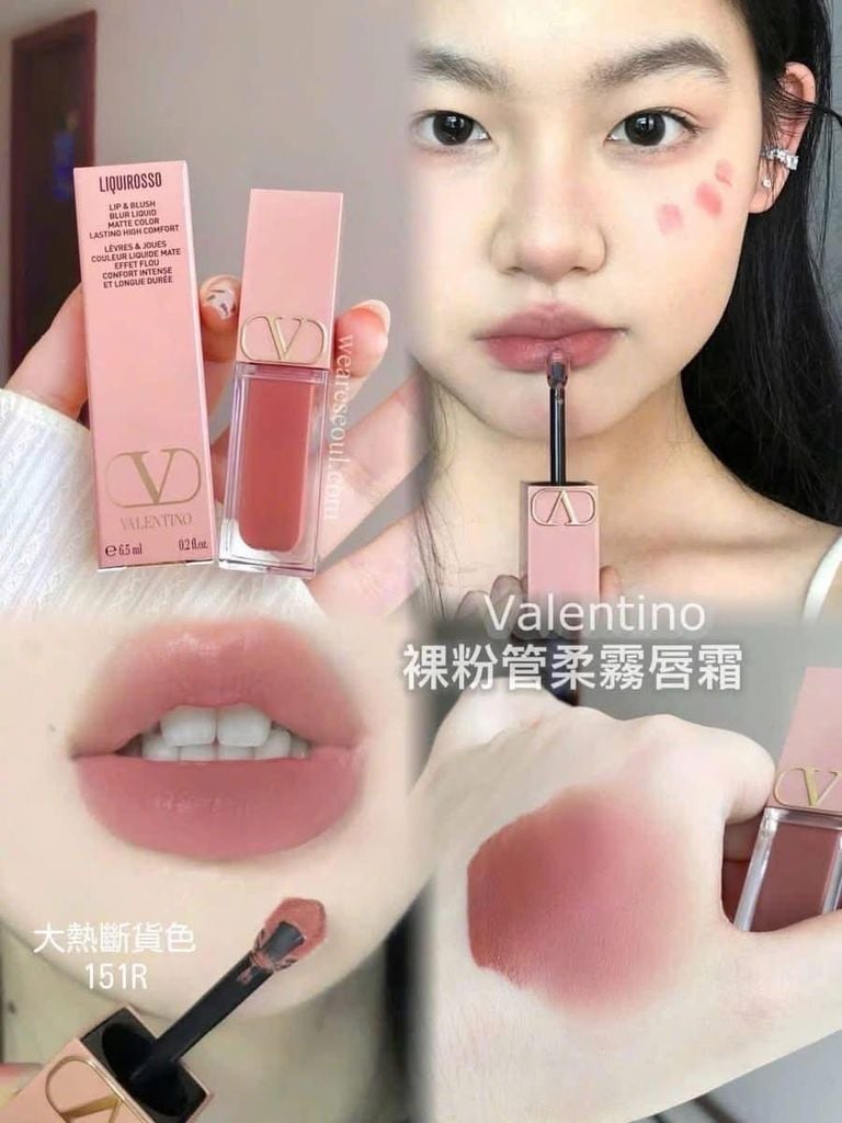 Son kem Valentino Liquirosso Lip & Blush Blur Liquid 151R là dòng son cao cấp đến từ thương hiệu Valentino. Sản phẩm nổi bật với thiết kế 2in1 có thể dùng cho môi và má, mang lại lớp makeup đồng điệu, tự nhiên và thời thượng.