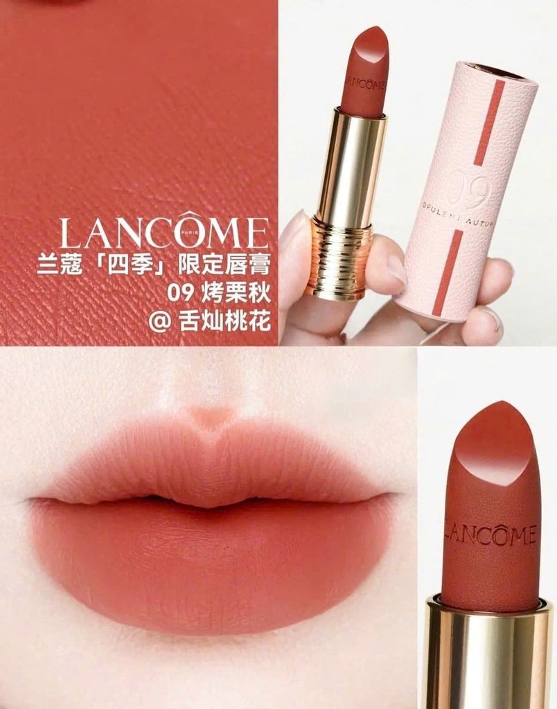 - Son Lancome Drama Matte 09 Opulent Autumn mới vừa được ra mắt trong bộ sưu tập son năm 2025 của nhà Lancome mang tông màu cam đất là một trong những màu son đặc biệt . Đây là một phiên bản giới hạn với thiết kế bao bì sang trọng và thanh lịch.