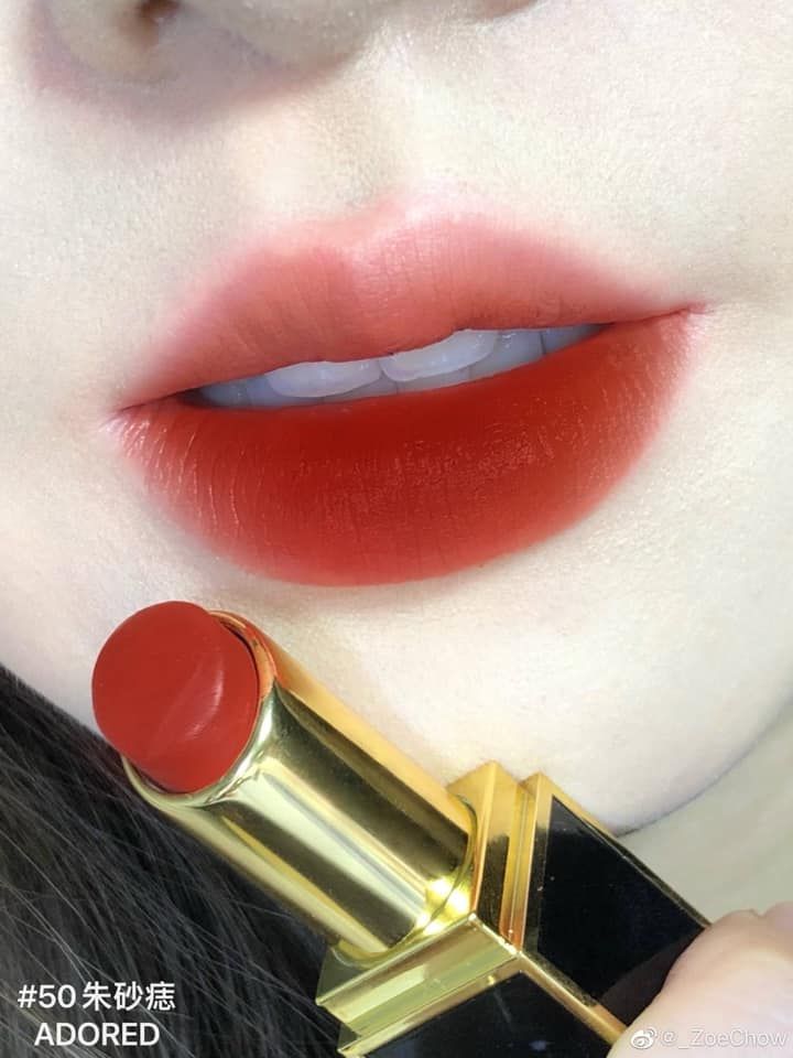 - Son Tom Ford Lip Color Satin Matte 50 Adored màu đỏ cam cháy tone màu siêu HOT năm nay tông màu lạ mắt cực da dẫn đầu xu hướng mà phái đẹp săn đón. Tom Ford 50 Adored là sự kết hợp hoàn hảo giữa chất son satin mềm mịn và dạng son lì nên các Nàng sẽ cảm nhận được ngay chất con mềm mướt khi lên môi nè.