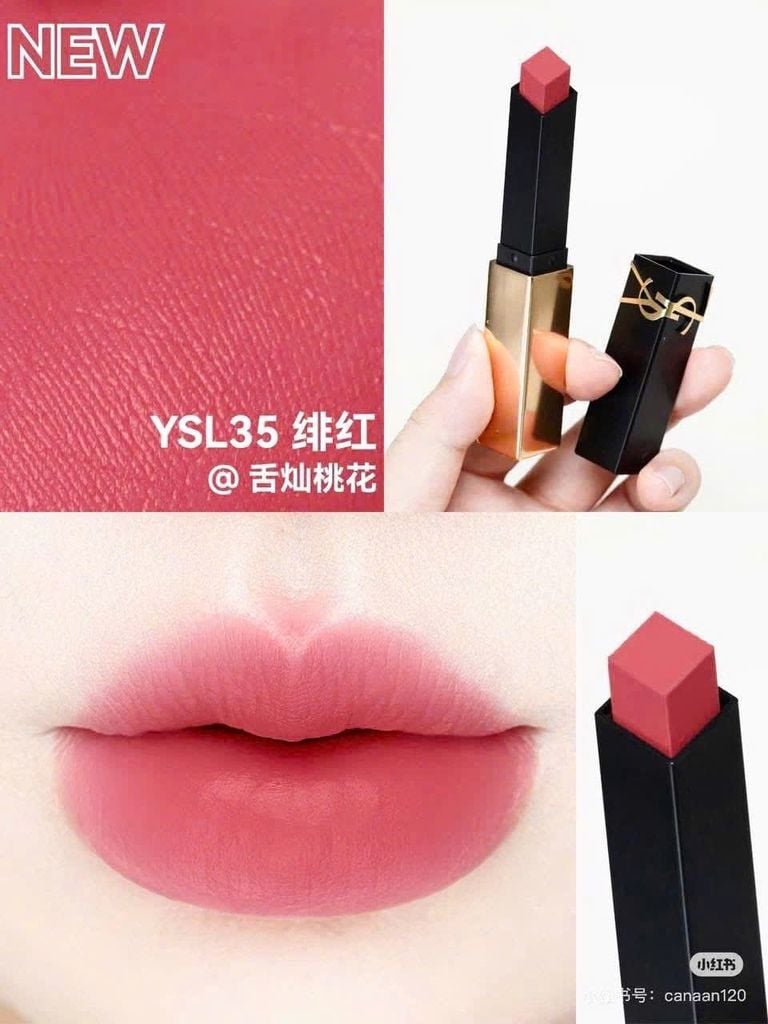 - Son YSL The Slim 35 Pink Stiletto mẫu mới năm 2025 là một tông màu hồng đào ngọt ngào mới ra của hãng. YSL 35 cho chuẩn xác, lên môi nhìn mọng cùng chất son mịn, mềm và mướt, rất nhiều dưỡng nhưng lại không bị cái cảm giác môi bóng và dính.